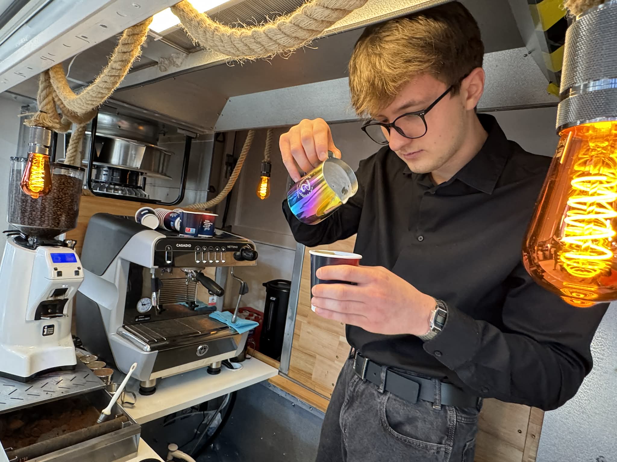 W wielu ciekawych warunkach przychodziło nam robić kawę, więc jeśli dostaliśmy informację, że bar kawowy mamy zorganizować w kontenerze, w którym na co dzień znajdują się różne prądotwórcze tematy, to jedyne co mogliśmy odpowiedzieć to: PEWKA!